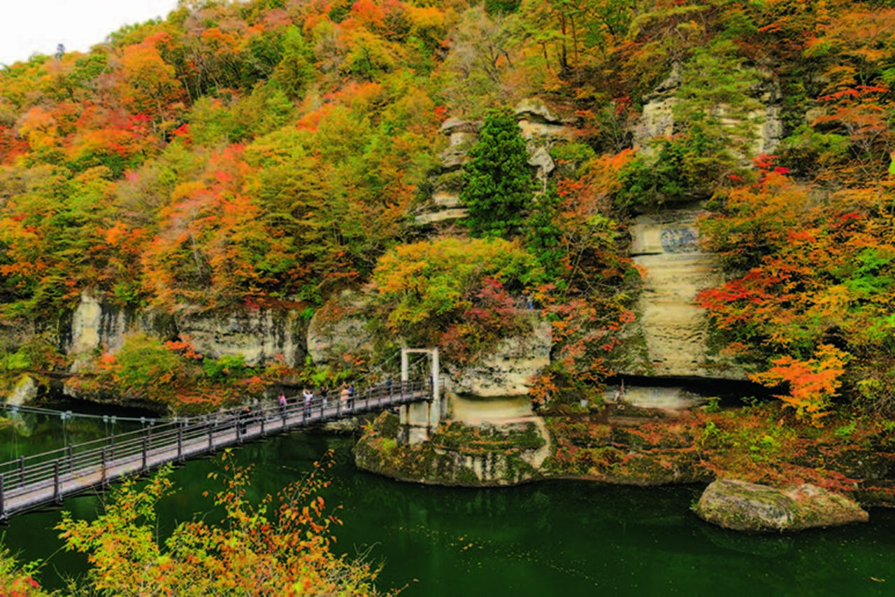 100万年をかけて浸食と風化を繰り返した奇岩が雄大な景観を作り出した景勝地で、紅葉の名所としても知られる。ちなみに「へつり」とは会津地方の方言で「断崖」や「危険な崖」という意味である