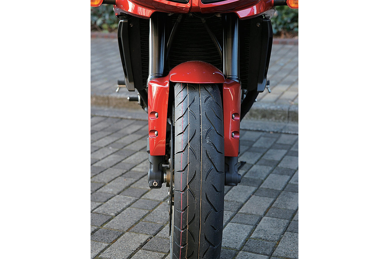 フロントフォークはしっかり動き、ダストシールからのオイル漏れもなし。もちろん、あらゆる角度から目を凝らしても、インナーチューブの曲がりを確認できない。なのに、転倒直後からハンドリングがおかしい。