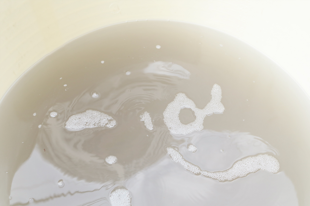 桶などに張った水の量に合わせて洗剤を入れて混ぜる。分量は洗剤の注意書きにあるのでしっかりと守る。薄めから調整するといい