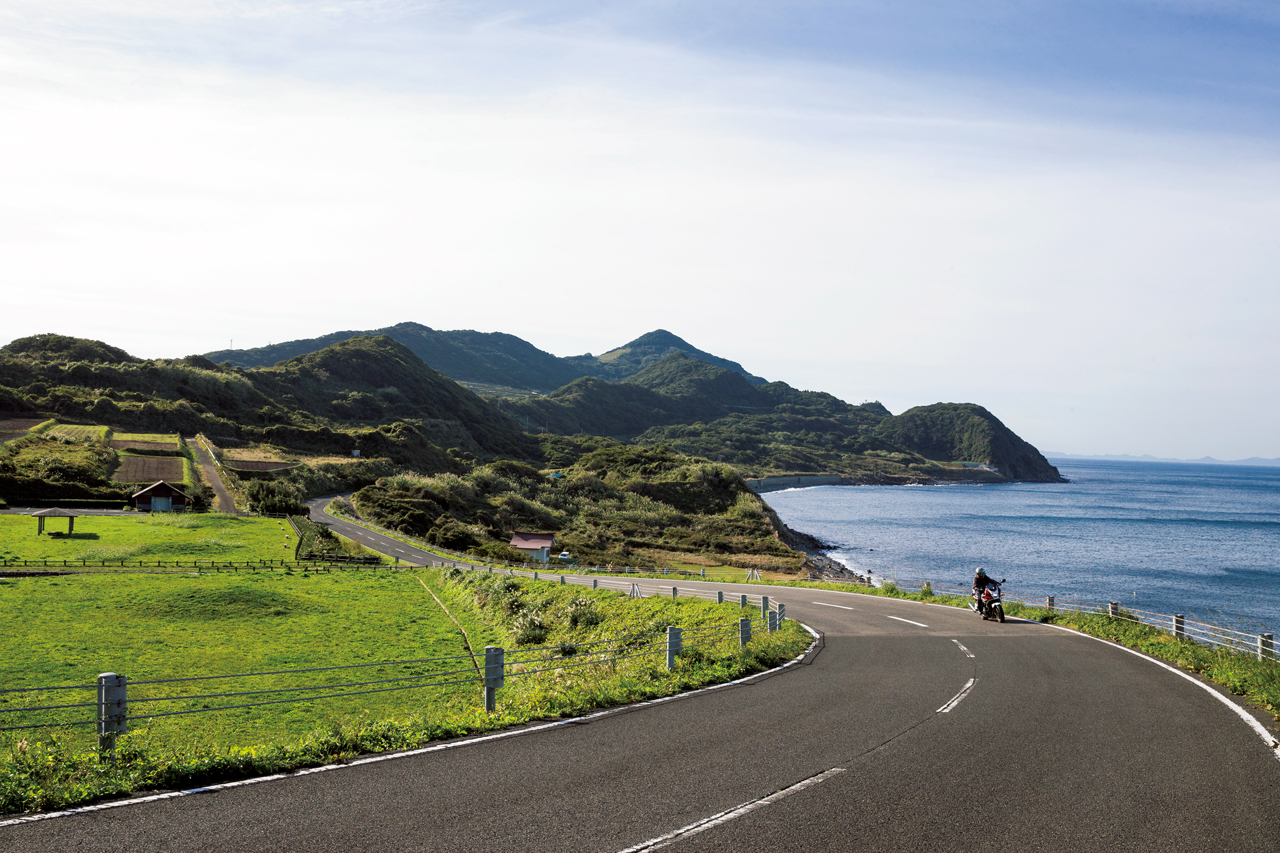 佐田岬のほぼ中央部を尾根伝いに走る国道197号の愛称が、メロディーライン。細長い岬の頂上付近を走り、最後は海岸線に。ここから国道九四フェリーに乗れば、あっという間に九州だ