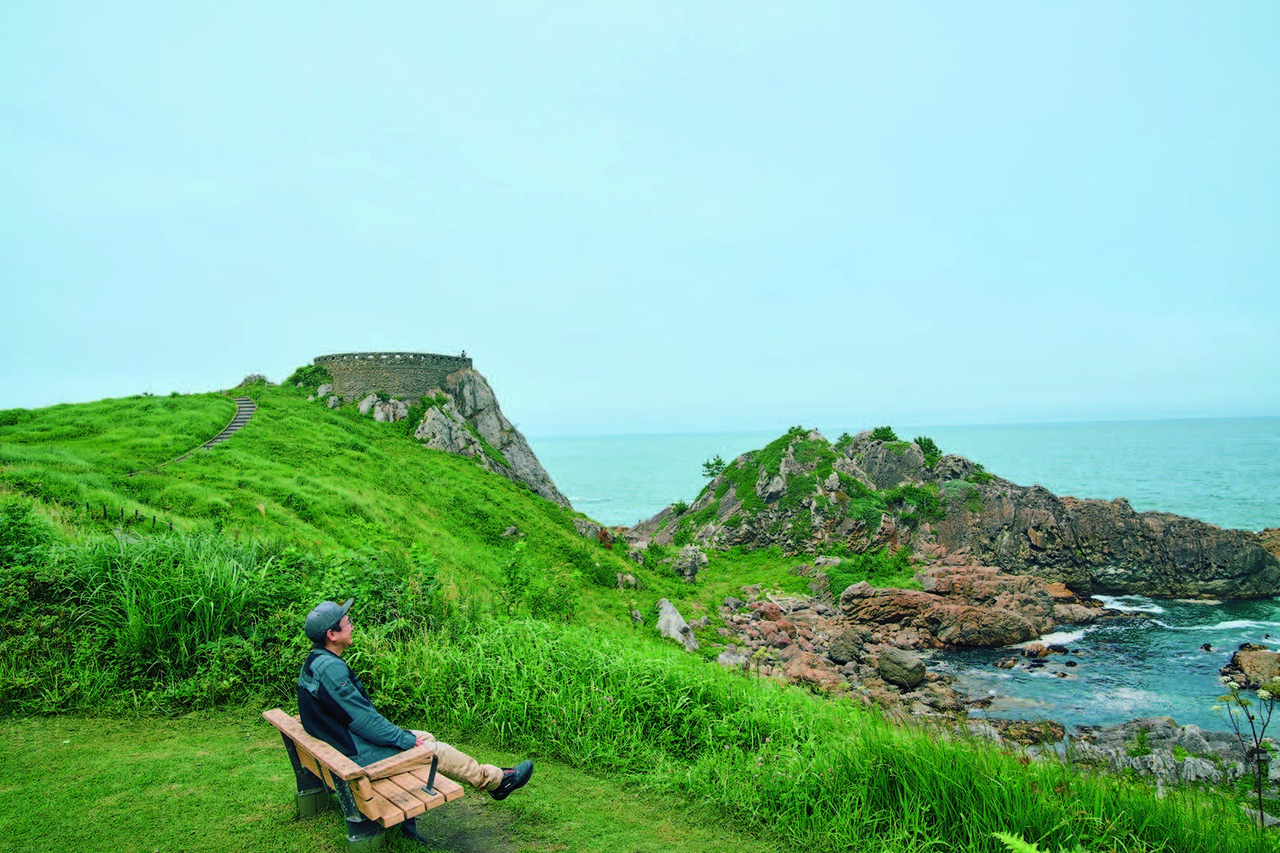 太平洋戦争末期には旧日本軍が軍事施設として使用していたという古城のような雰囲気の展望台。360度のオープンビューを見渡すことができる。休憩用ベンチも多い