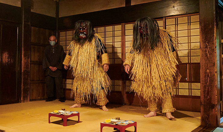 まず押さえておかなければいけないのは、ナマハゲは鬼ではないということ。見かけは怖いが山の神の化身であり、里の人々の暮らしをすべてお見通しで、大晦日に各家庭を巡って人々を戒めるのだ。そもそも囲炉裏で長く暖を取ってさぼっていると手足に火斑ができる。これを方言でナモミという。怠け心を戒める「ナモミ剥ぎ」がナマハゲの語源とされている。