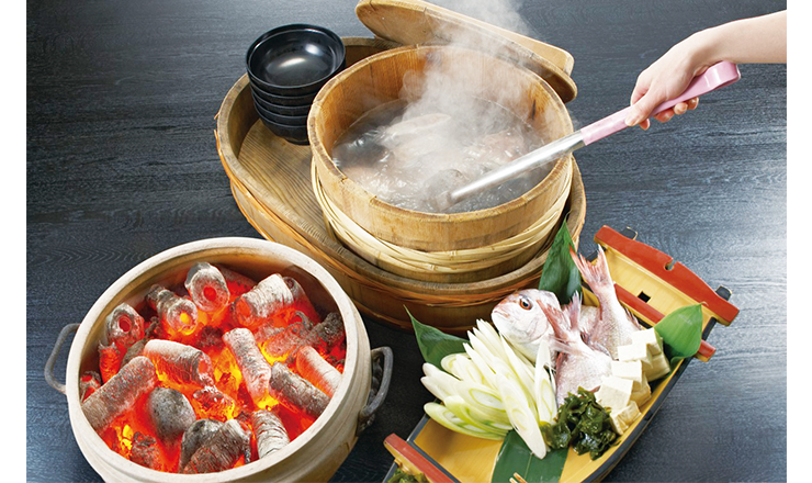 男鹿の料理といえば石焼料理。真っ赤になるまで焼けた石で生の魚介を急加熱することで旨味を閉じ込める。ホテルや食堂で楽しめるので、旅程に合わせて昼食か夕食のメニューに組み込みたい