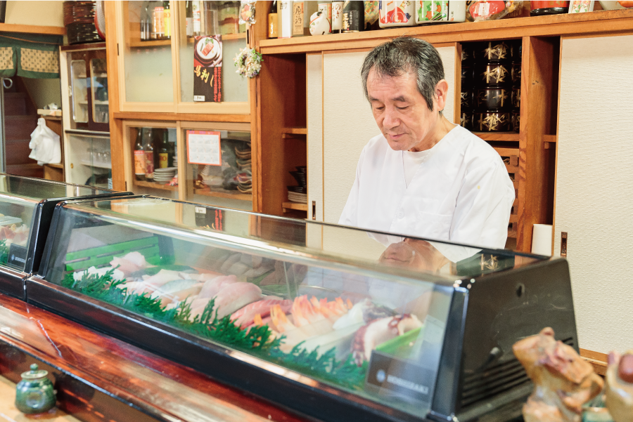 地元にも愛され続け40年以上続く老舗店。もともとはラーメン屋だったので、ラーメンもオーダーできるところも珍しい。佐渡は両津港があり、活きのいい魚がすぐに手に入り、うまい寿司が安く提供できるという。佐渡市認証米を使ったシャリは存在感がある。
