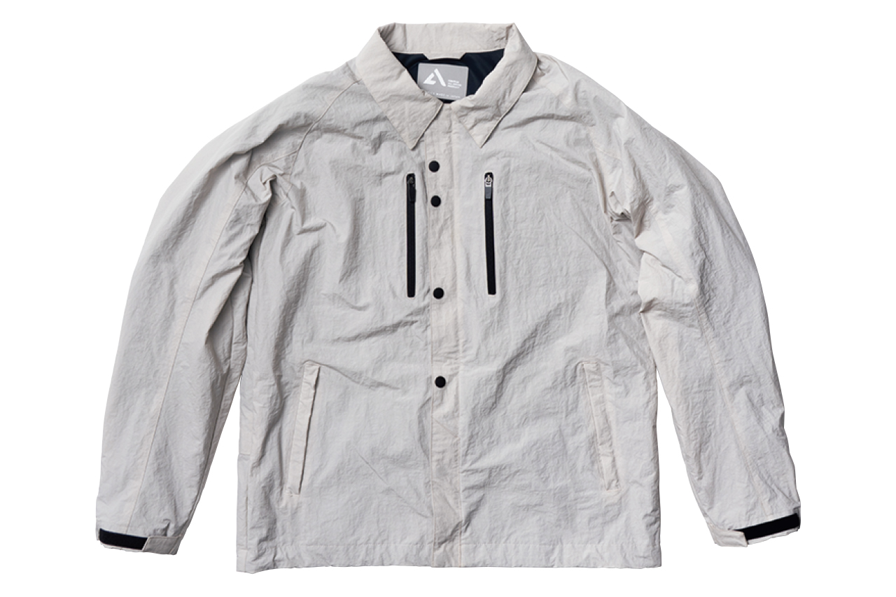 軽快さを求めるなら「コーチジャケット」も魅力的だ。撥水加工を施したシンプルなデザインに、ラグランスリーブを採用して肩周りの動きやすさを実現。さらに軽量プロテクターを標準装備。裾のドローコードでフィット感を自在に調整できる。