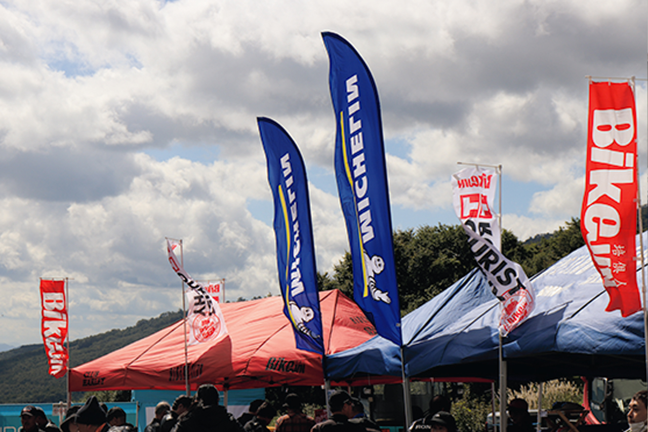 出店エリアには二輪の用品・パーツメーカーが立ち並び、製品の展示やライディングギアの販売などを行った。飲食・特産エリアには雫石町をはじめ地元の酒造やキッチンカーも出店。