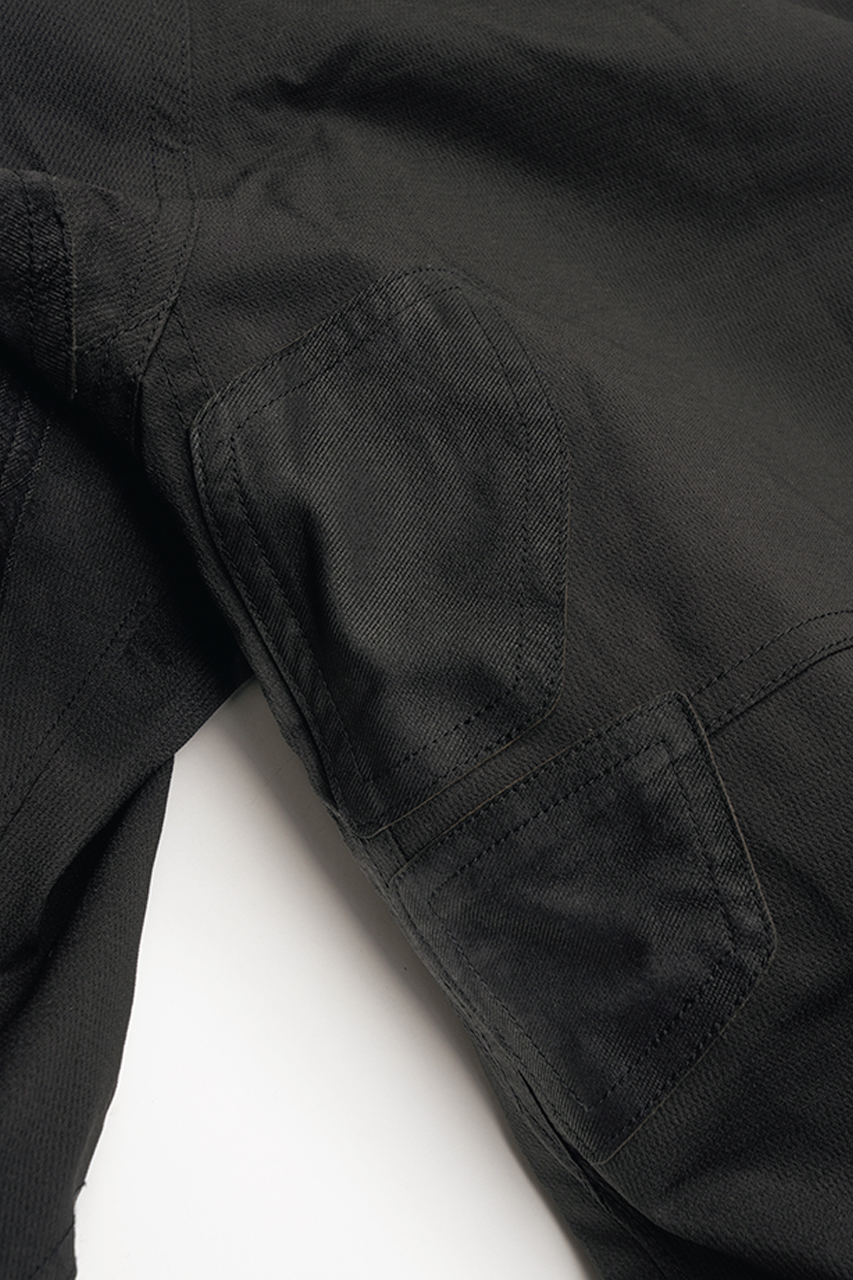 杢調×格子柄のストレッチ生地を採用した防水ジャケット。立体カッティングに加え止水仕様や通気機能を搭載。インナー脱着システムで多用途に対応し、耐水・透湿性能も高い。胸・肩・肘・脊椎部分には別売りのプロテクターを装着可能で安全面も◎