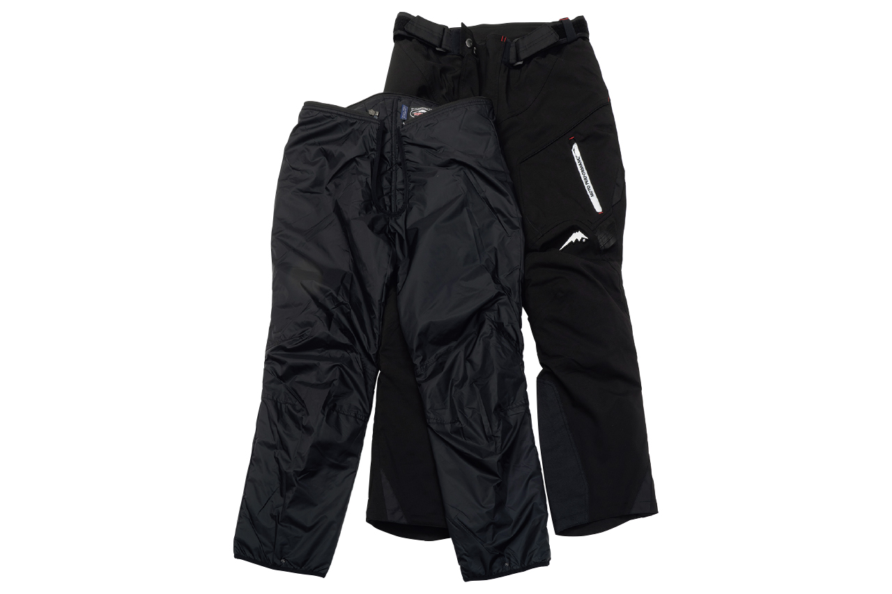 キルトインナー脱着式のオーバーパンツ。足長効果のカッティングと杢調×格子柄のストレッチ生地で高級感を演出。止水ファスナーポケットやEXレザー補強を備え、CE膝プロテクターも標準装備。耐水・透湿性能も高水準