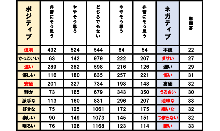 原付に対するイメージはかなり悪いようだ。これでは電動アシスト自転車に負けてしまうのもうなずける。中でも「つまらない」「暗い」というワードは悲しすぎる。メーカーにはぜひ楽しく明るい原付を作ってほしい