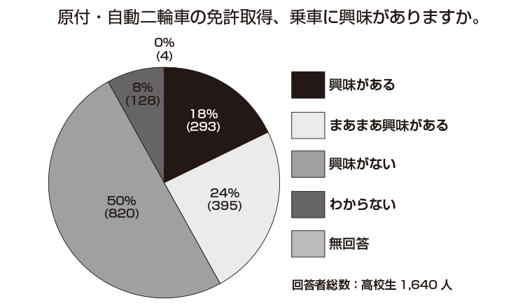 「原付・自動二輪車の 免許取得、乗車に 興味がありますか?」
