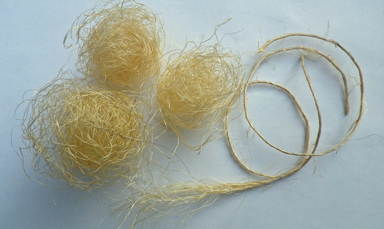 ❺麻ヒモをほどいてフンワリまとめるとこれも格好の焚き付けになる。麻ヒモは強度も高く、細引きロープのバックアップとしても最適だ