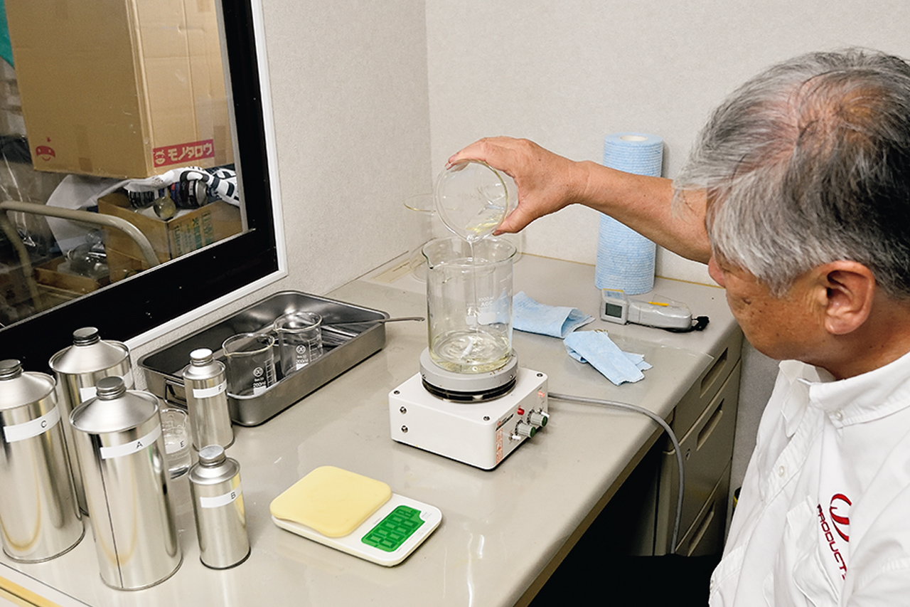 岸野さんは、長年にわたりエンジンオイルの開発に携わってきた経験がある。にも関わらず、エンジンオイルの開発時には自らブレンド方法を実験し確認を怠らない。オイルのブレンドは、それほど複雑で難易度が高い。岸野さんが、エンジンオイルのレシピを秘匿することにこだわらなかった理由はそこにある。