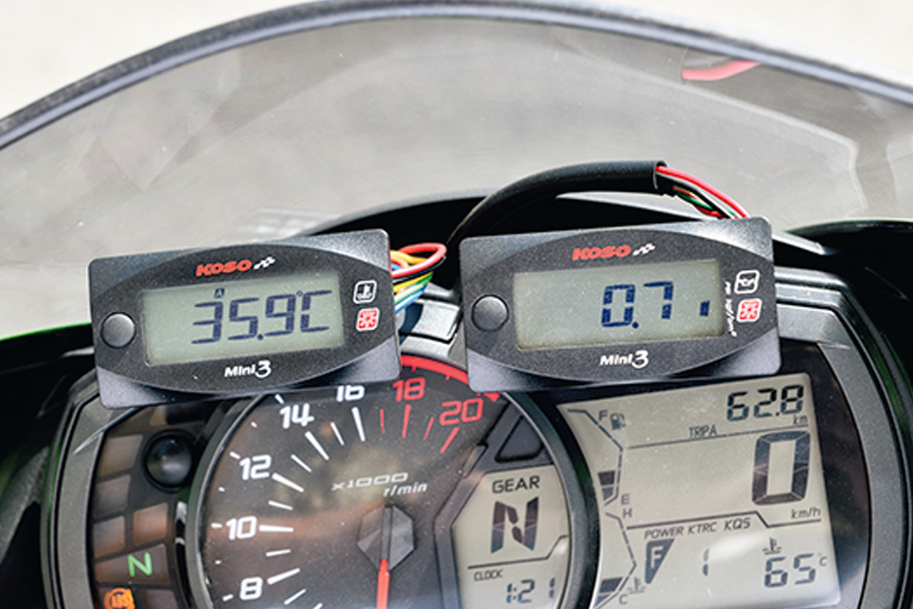 ジェイシーディプロダクツではさまざまな排気量、エンジン形式のバイクをテスト車両として所有。その全てに油温計と油圧計が装着され走行中にモニタリング、データのロギングも行い開発に活用している
