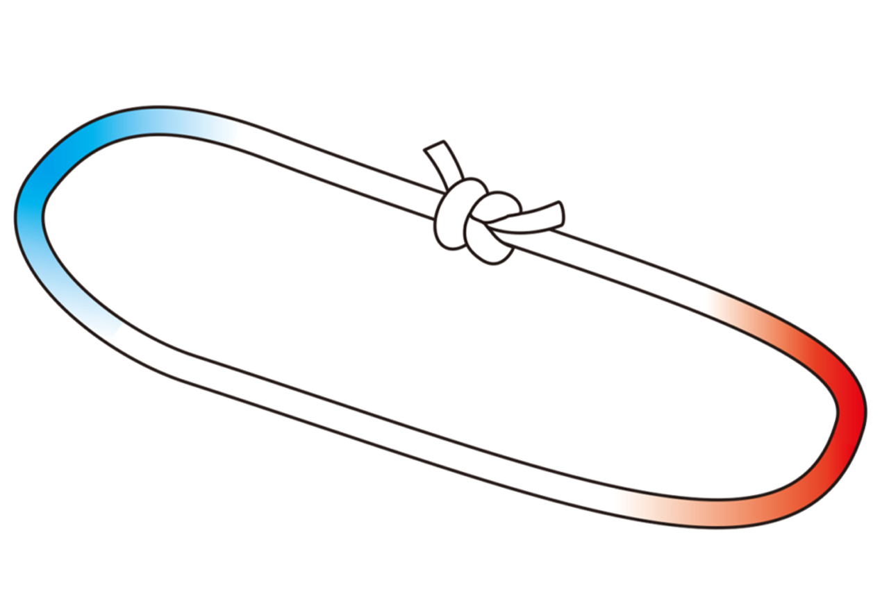 本結び、もしくはかた結び(ひと結び)でロープを輪にする