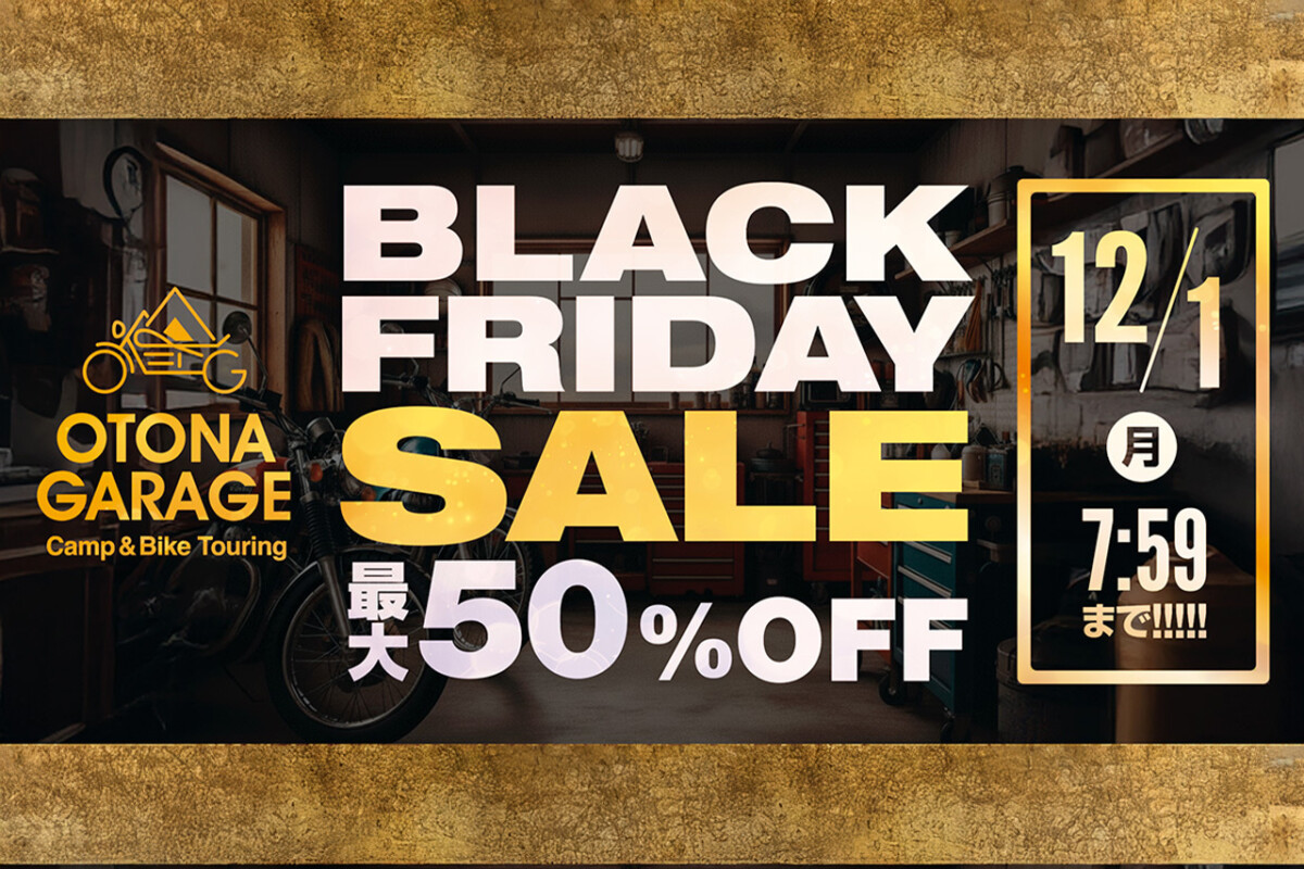 バイクツーリング好きの“大人ライダー”に贈る期間限定フェア、OTONA GARAGEにて12/1(月)7:59まで「ブラックフライデーセール」を実施中。普段手が届きにくいアイテムもお得な価格で登場。冬のツーリング前に、今こそ“良いモノ”を手に入れるチャンスです