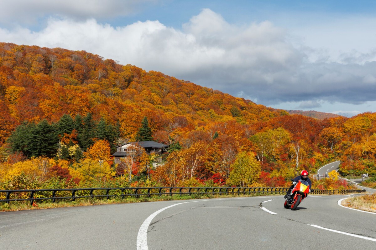 冬季閉鎖直前の八幡平は紅葉の盛りで美しい絵画の中を走るようだ。しかし気温は5度前後とさすがに晩秋の岩手県の山頂は寒い。