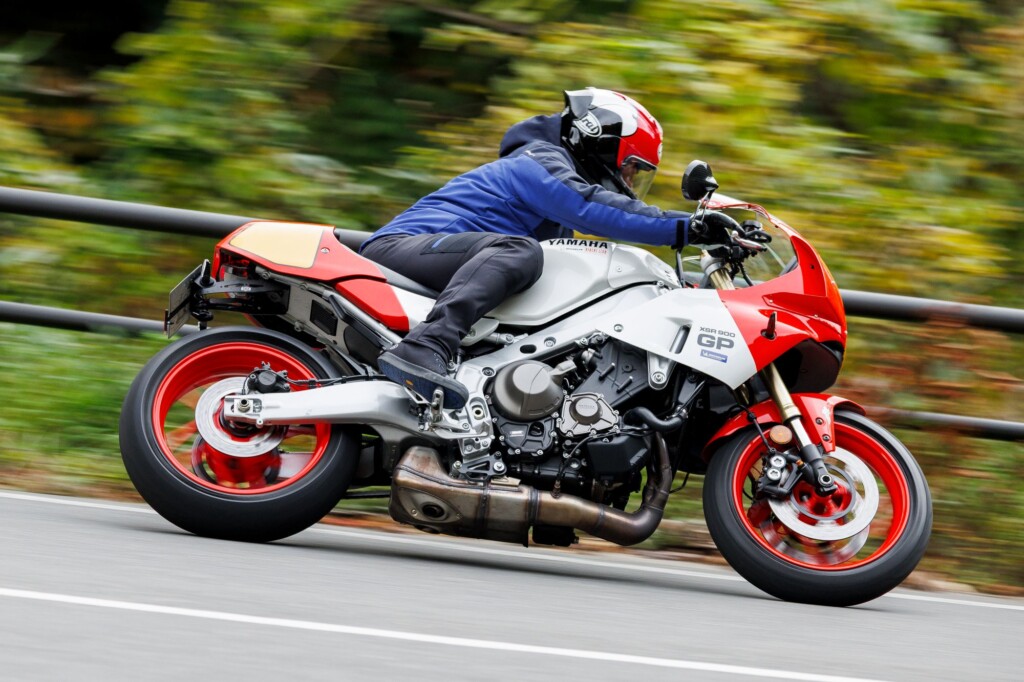ヤマハXSR900GPに装着して岩手県八幡平のワインディングロードでテスト