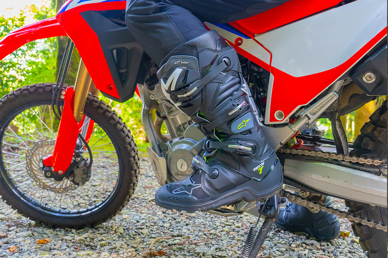 アルパインスターズのテック7ドライスターは想像以上にかっこよくて気分がアガるアイテム。そして、なるべく足を怪我したくないからちゃんとしたブーツを