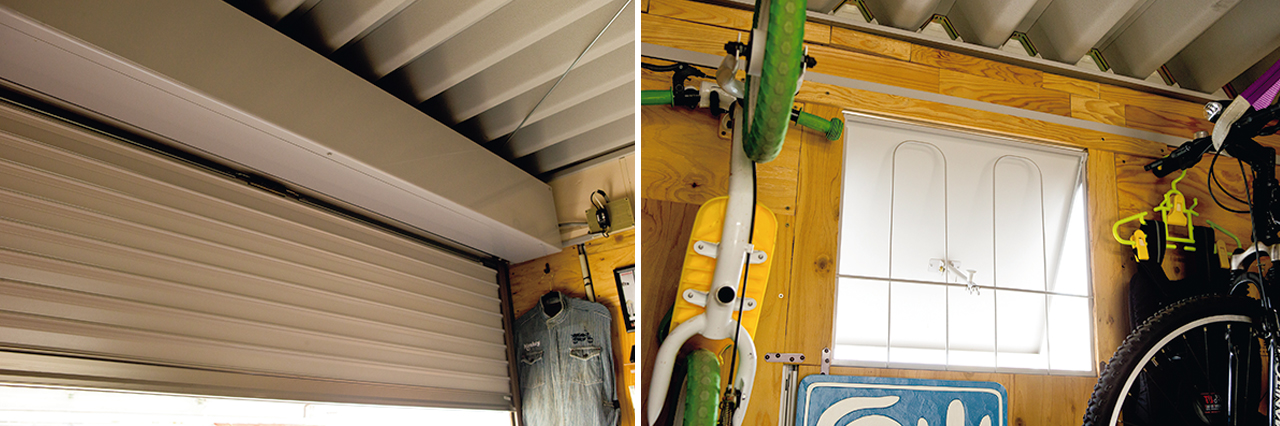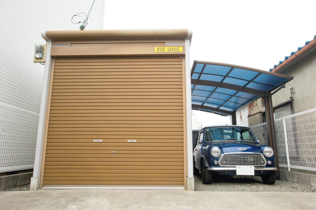 ヨドコウの場合、ベースのガレージにさまざまなオプションを追加できる。福森さんはハイルーフにして、小窓とシャッターカバーを追加。ちなみにシャッターカバーが無いと、シャッターを開けた際に雨水などがガレージ内に飛び散るそうなのでオススメのオプションだそうだ