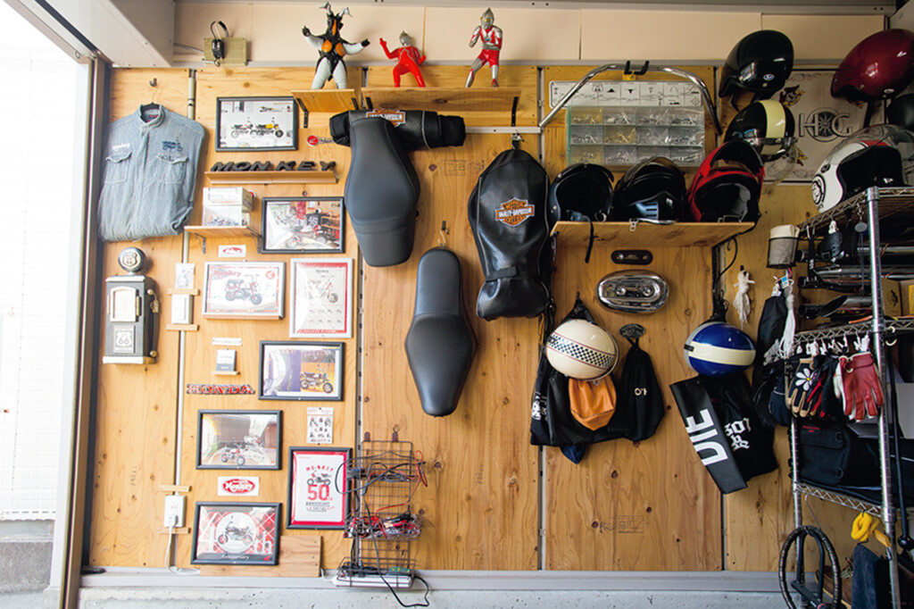 「今後のガレージの計画ですか?う〜ん、物が増え過ぎまして」と、ガレージが完成してからバイクも一気に5台に増えた福森さん。工具やパーツなどのバイク用品以外にも、趣味の私物がガレージ内を侵食していく。几帳面な福森さんでさえ〝ガレージあるある〞の例外ではないようだ。
