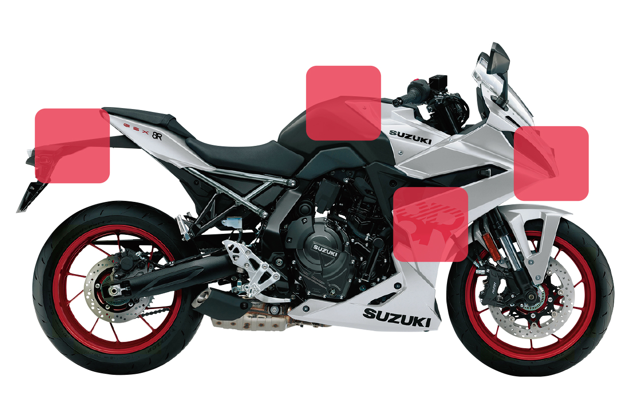 サイドカウルなど、地面から近い場所に装着するため、スピード感のある映像が撮りたいならこの位置がオススメ。言わずもがな転倒したらカメラがモロにダメージを受けるため気を付けよう