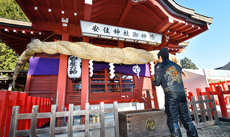 全国バイク神社認定第一号を名乗り、漫画「ばくおん!!」に登場したことで聖地としてさらに人気が高まった。現在の本殿は1700年代中盤の建築と推定されている。ホンダコレクションホールも有するツインリンクもてぎからも比較的近い場所にあるので、暖かくなればツーリングルートを組みやすいかも。