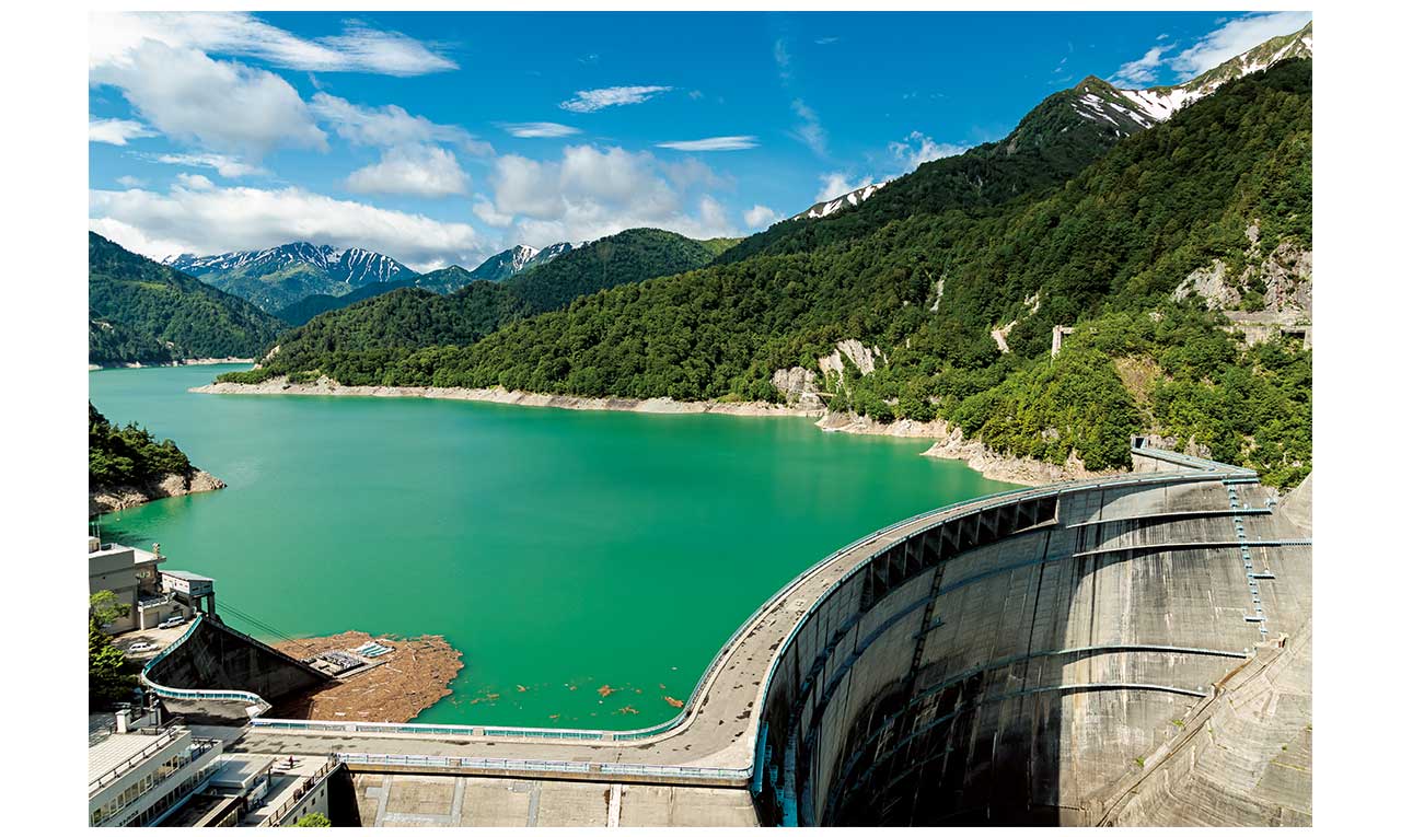 186mの堰堤が日本一高く、世界的にも最大級の水力発電ダム。環境保全のため一般車は大町アルペンライン終点まで。そこから公共の電気バスに乗る。その先のケーブルカーやロープウェイも楽しい