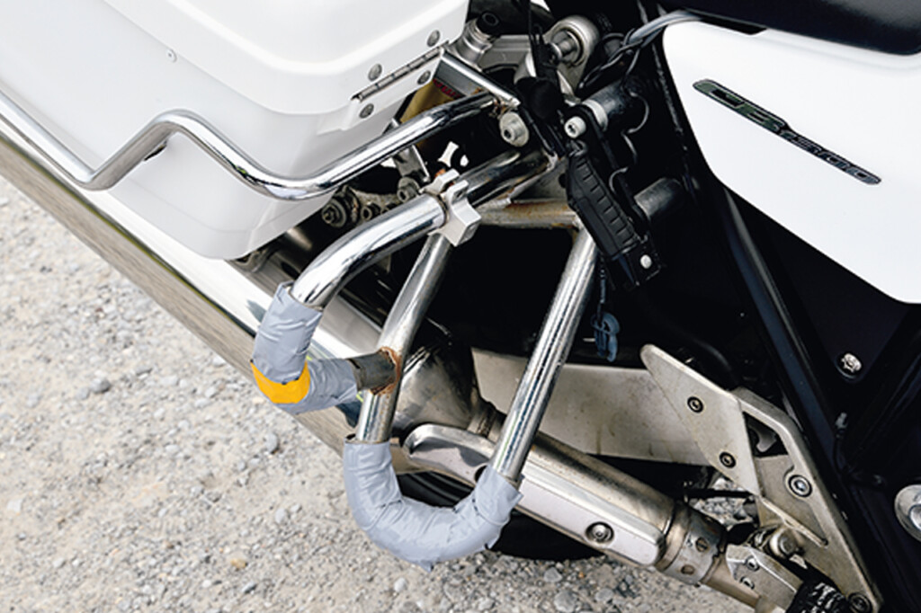 ホンダCB1300STをベースに、警察等からアドバイスを受けながらカスタムした遠見さんの愛車。道路車両運送法を順守し、このままの状態で車検に通るそうだ