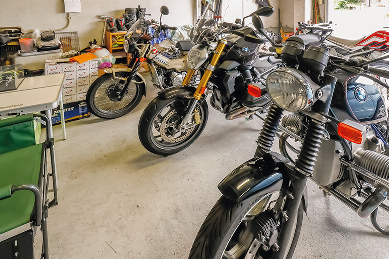 BMWからセローまで!オフロード主体ライダーの広々ガレージ公開と至福のメンテナンス時間
