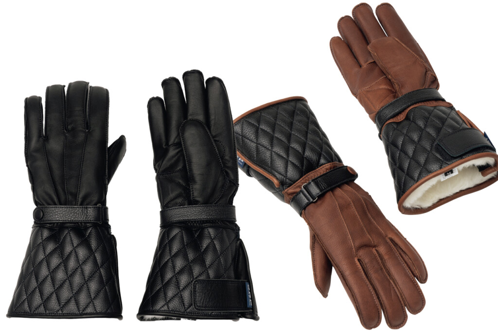 ラインナップのうち、厳しい冬のライディングに対応するロングタイプのウインターグローブが「GNW」だ。袖口まで覆うガントレットタイプを採用したデザインで、手首から上部には耐水加工を施した牛革、手首から下にはオイル入り牛革と2つの素材を使うことで、風の巻き込みを防ぎつつしっかりとした防寒性能を確保している。