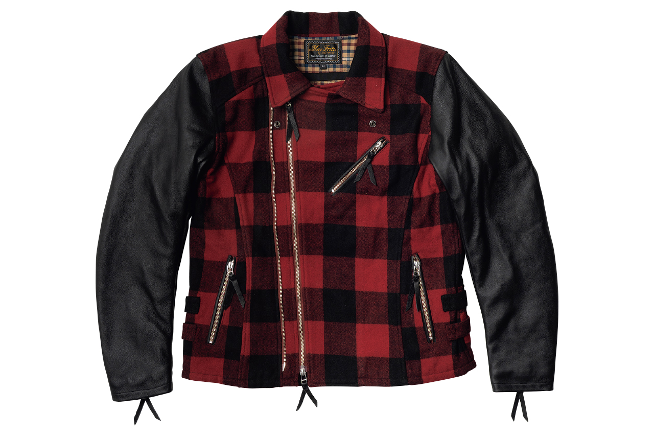 ツーリング時はスタイルコーディネートを楽しみたいのは、寒い冬も同じ。防寒性だけではなく、ファッション性も気にかけてウエアを選びたい。マックスフリッツの「ブロックチェックダブルライダース」は、冬の走行を前提に設計されたヘビーアウターで、身頃にはウールメルトン生地、袖にはタフな牛革をあわせた仕様。クラシカルな表情とプロテクション性を両立したデザインだ。透湿防水防風フィルムと中綿、裏地を重ねた4重構造で、走行風と冷気をブロックしてくれる。各部のディテールも走りを意識したものになっているので、冬だけでなく晩秋から春先まで活躍する一着だ。
