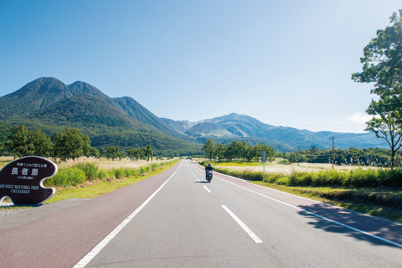 阿蘇の絶景ロードを巡るなら、南阿蘇から阿蘇パノラマラインで外輪山を上り、草千里を経てミルクロードへ。稜線を走り抜けたら瀬の本からやまなみハイウェイに合流し、長者原方面へ。雄大な景色と高原の風を満喫できる