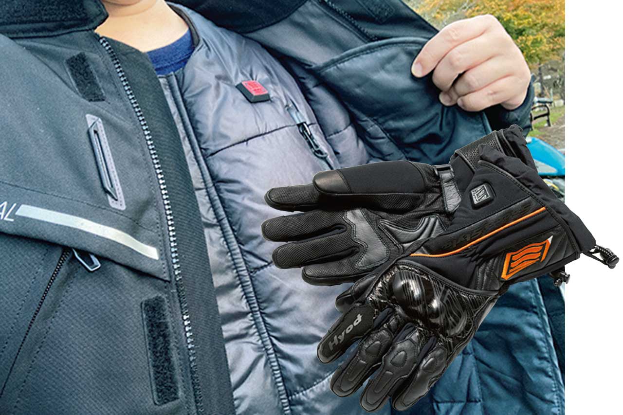 効果的な防寒グッズとして、年々注目度が高まっているのが電熱ウエア。電気で駆動する熱線やパネルが内蔵されたウエアやグローブのことで、グローブは単体着用する構造が一般的だが、ウエアはミドルレイヤーとして着用する製品が多い。電源供給は車載バッテリーかモバイルバッテリーの2択で、前者はバッテリー切れの心配は少ないが、後者は導入が簡単で降車時にも恩恵を得られる。ちなみに、以前からあるグリップヒーターも依然として人気は高い。指先や手のひらを直接温めることで、寒さによる痺れやかじかみは軽減されるぞ。