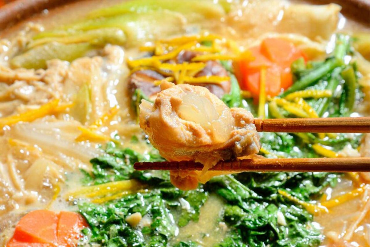 丁寧にぬめりなどを取り雑味が出ないようにするのが肝心だとか。さらには白身とゼラチン質など、部位によって煮込み時間が違うのである。よってあらかじめ部位ごとに下煮をしておき、客に出す直前に土鍋で合わせるのだ。