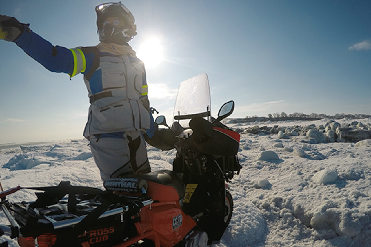 冬季の北海道も、スパイクなど“ちゃんと対策”をすれば楽しく走れる。写真は“流氷の上を走る”ことを目標に、札幌から網走へ。往復1000㎞