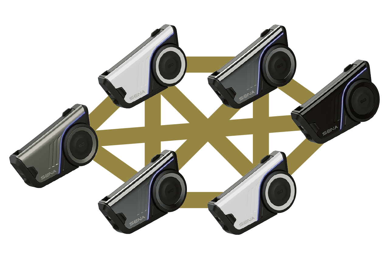 第三世代のメッシュ・グループ通話「SENA Mesh 3.0」を搭載。見直されたメッシュ通信システムによって、接続の安定性や音質がアップしている。また、メッシュ通信システムは下位互換性があり、従来のセナ・インターコムと接続できる