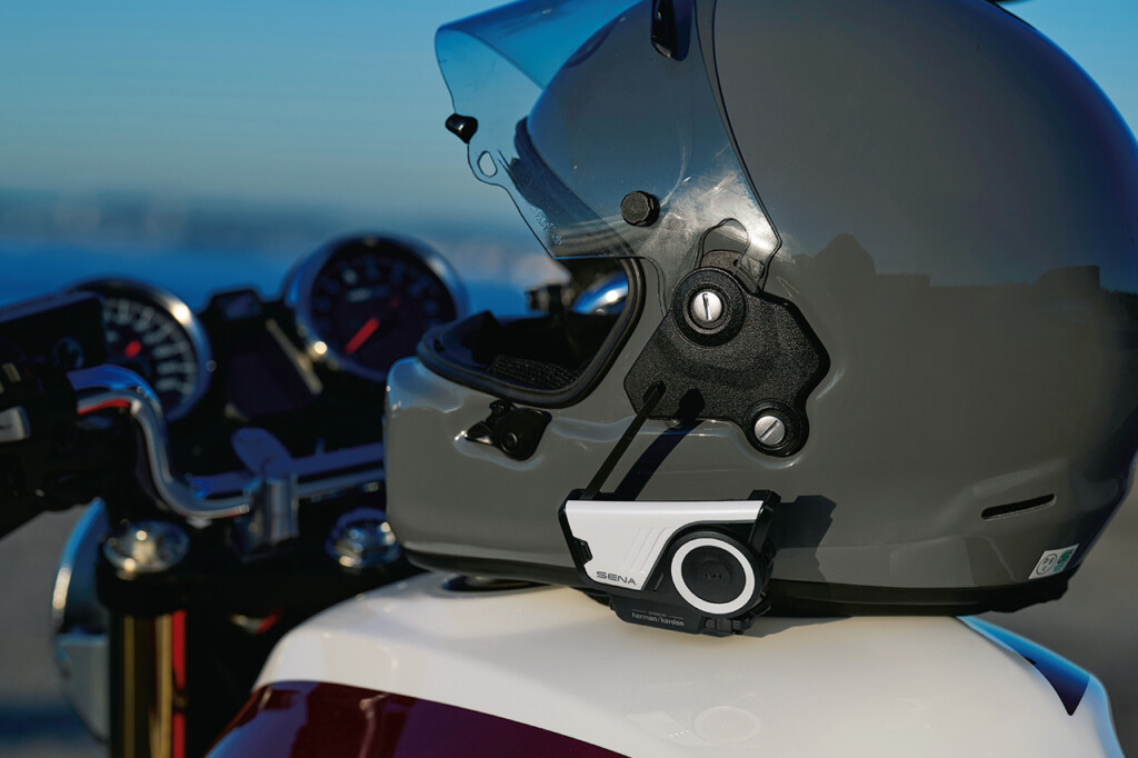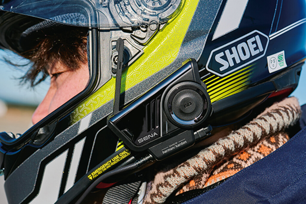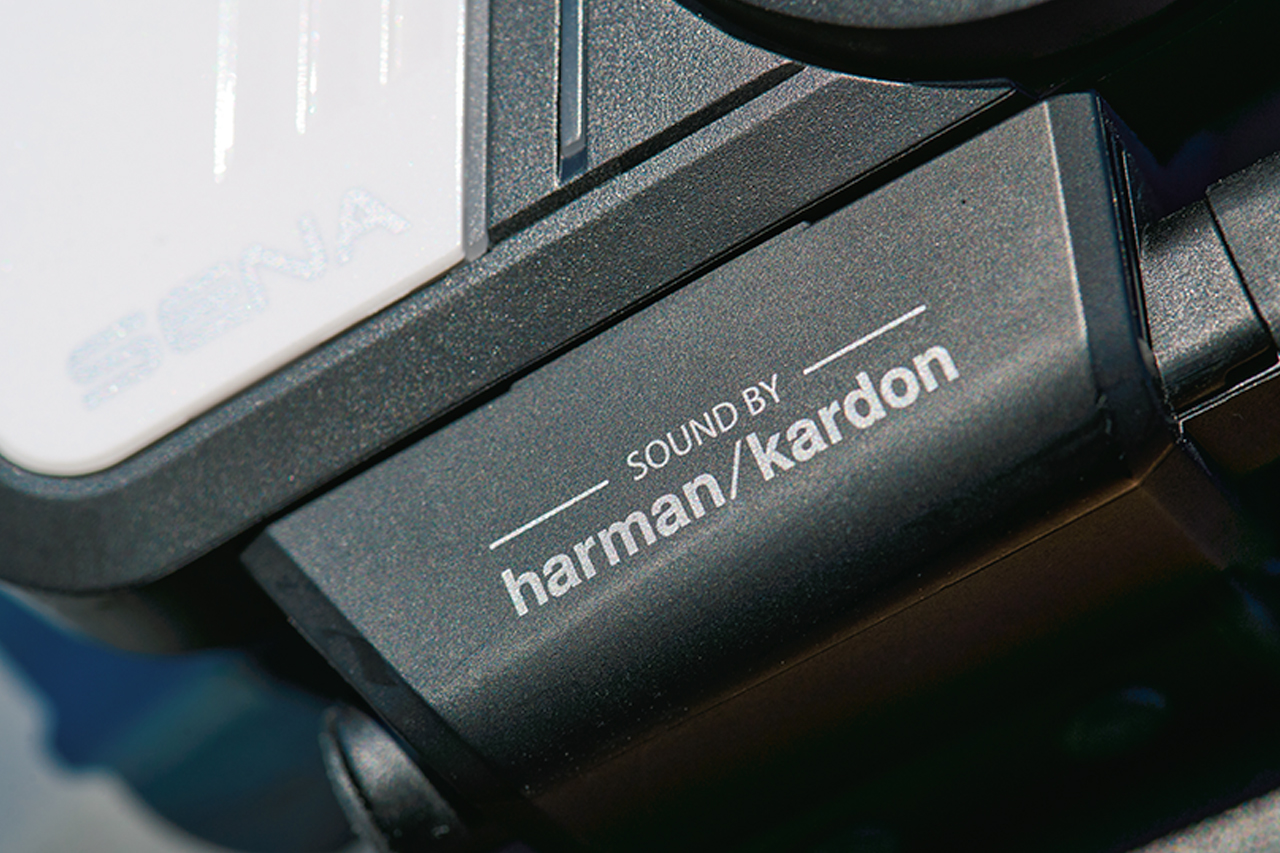 また、ハーマン・カードンとのコラボも、スピーカーが第二世代になるなど進化を遂げている。実際に音楽を聞いてみたが、ヘルメットの外から入ってくる風切音や走行音といった外的ノイズをものともしない、音質のよさを感じさせてくれる。これはスピーカーの進化にとどまらず、AIを駆使したノイズの抑制やエコーキャンセルといった機能が威力を発揮しているのだろう。