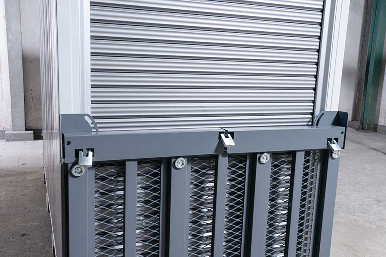 高い防犯性能が特徴となっていて、シャッター+3カ所の南京錠掛けという4重ロック構造を採用している。愛車を大切に守ってくれる設置型保管ガレージ