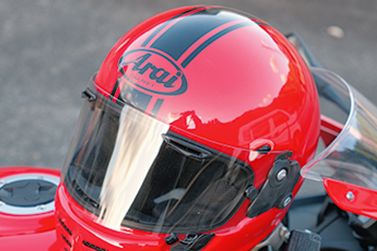 [Point]艶やかな赤いヘルメットに黒のラインが鋭く映える