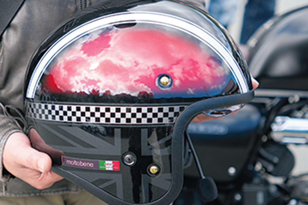 秋らしい空気に映える、シングルライダースジャケットを軸にした装いがセンスよく決まっている。私服の雰囲気に合わせて選んだというウエアは、バイクだけじゃなく、クルマを運転する際も愛用しているのだとか。とくにこだわりがあるのはヘルメットで、車両やシーンに応じて5つを使い分けるという徹底ぶりだ。