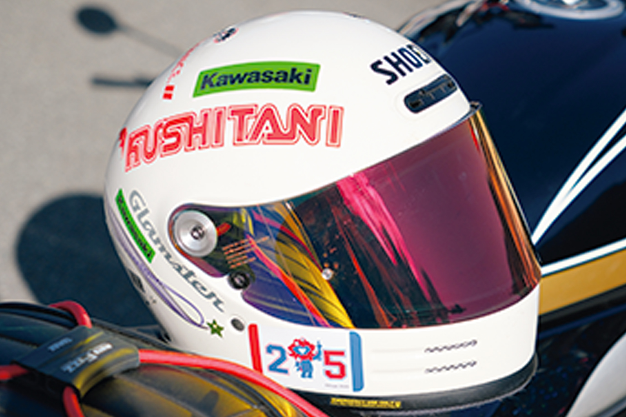 愛用しているRX-7Xは、サーキットでの思い出が詰まった大事なヘルメットだ