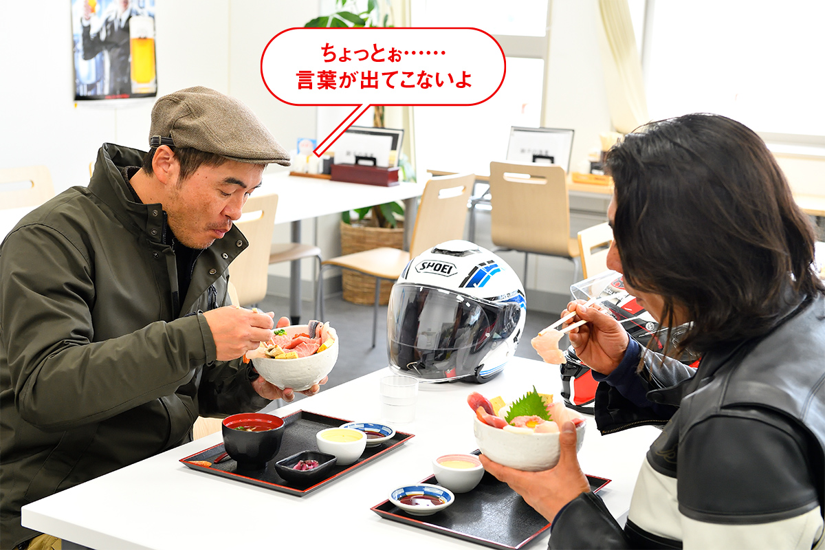 年間総水揚げ量日本一の銚子漁港周辺は、うまい海鮮丼が食べられるベストスポット。この時期でもバイクで簡単にアクセスできるので、真冬のグルメツーリングなら銚子に決まり!!