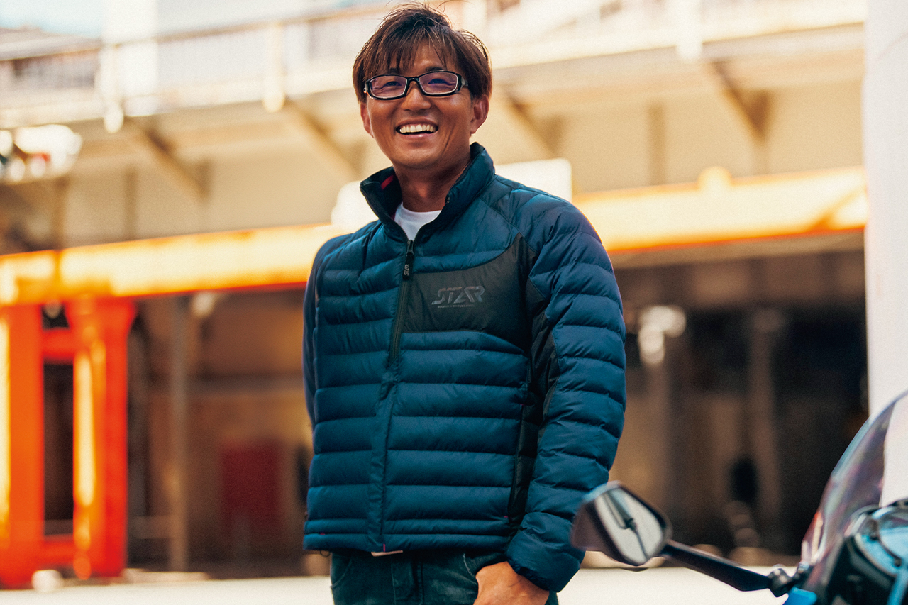 また柔らかく弾力に富み、天然羽毛のような心地よさを持ち合わせているのもエアーフレイクの特徴。「そのため着心地が非常に軽く、動きやすいウエアに仕上げることができます」と井上さん。それは身体全体でバイクを操るライディングウエアにとって重要な機能といえる。それに軽量だと長時間着用していても疲れないし、バイクを降りて街を歩くときにもストレスを感じにくいのが嬉しい。