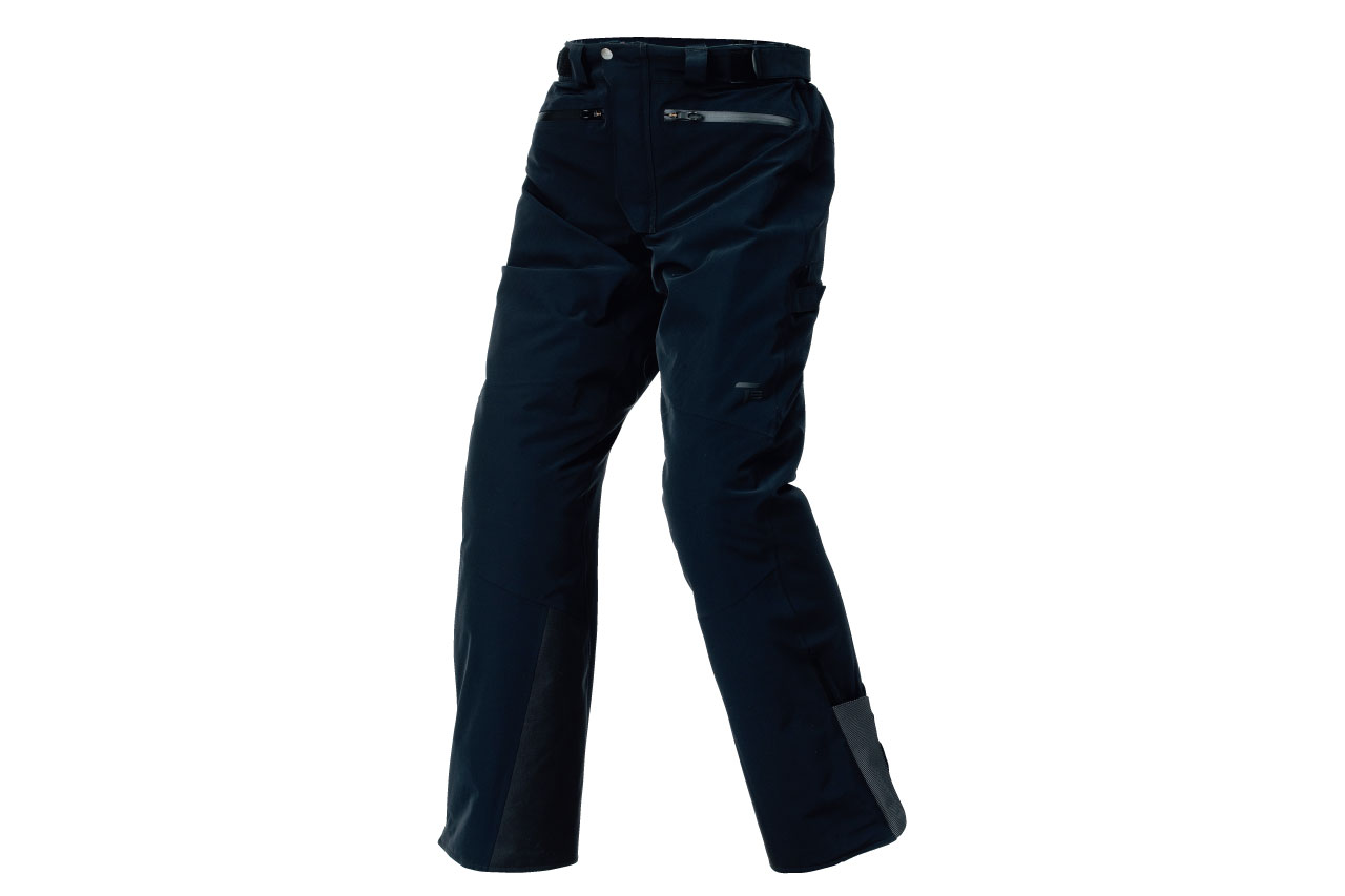 エアーフレイクよる暖かさと、レインウエア並みの防水・透湿性を誇る全天候型。股上を深めに設計することで寒風の侵入を防止。腰と膝にプロテクターを内蔵している