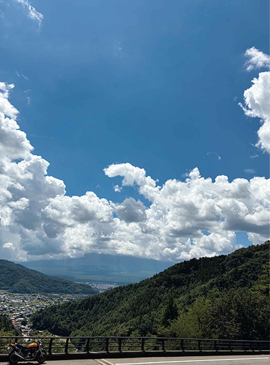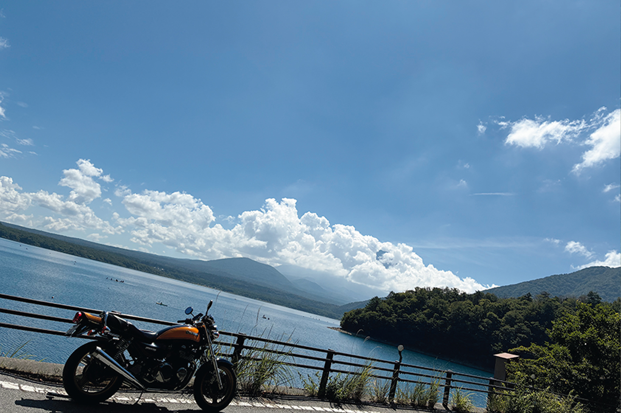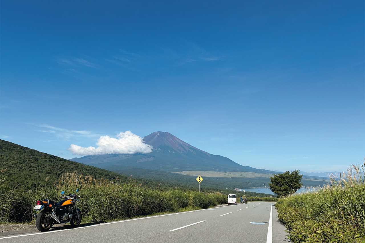 もうひとつの目的は湖を巡りながら“富士山×バイク×湖”の構図を狙うこと。山中湖では理想的なカットを収められたが、それ以外の湖では雲が邪魔をしてチャンスを逃した。それでも各湖を巡るルートは、景色も変化に富んでいて、走っているだけで楽しかった。
