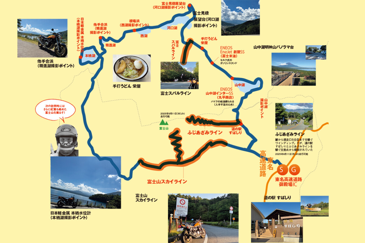 富士五湖ツーリング調査レポ。マイカー規制ルートや“富士山×バイク×湖”の絶景撮影スポットを紹介。湖畔の休憩ポイントも充実