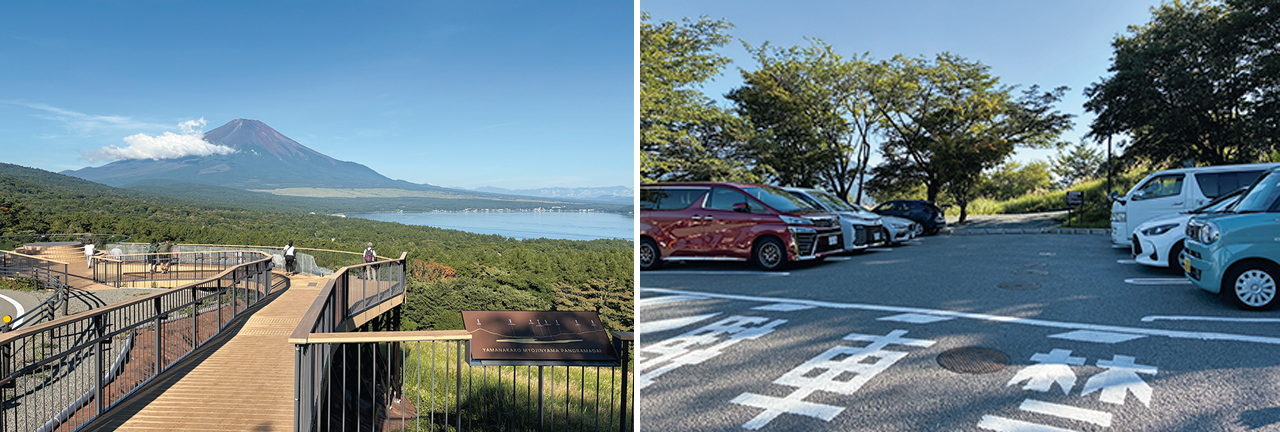 2024年11月に改修され舗装された駐車場と展望デッキが整備された。取材当日は7時過ぎに訪れたものの駐車場は既に満車、路駐しているクルマもチラホラ。ちなみにデッキにはバイクを乗り入れることはできないので注意しよう