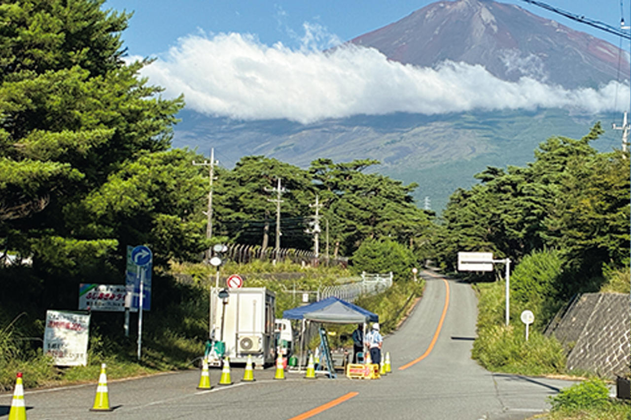 麓から須走口5合目までを繋ぐワインディング。だが、道の駅すばしりとふじあざみラインを繋ぐ交差点から規制されていた