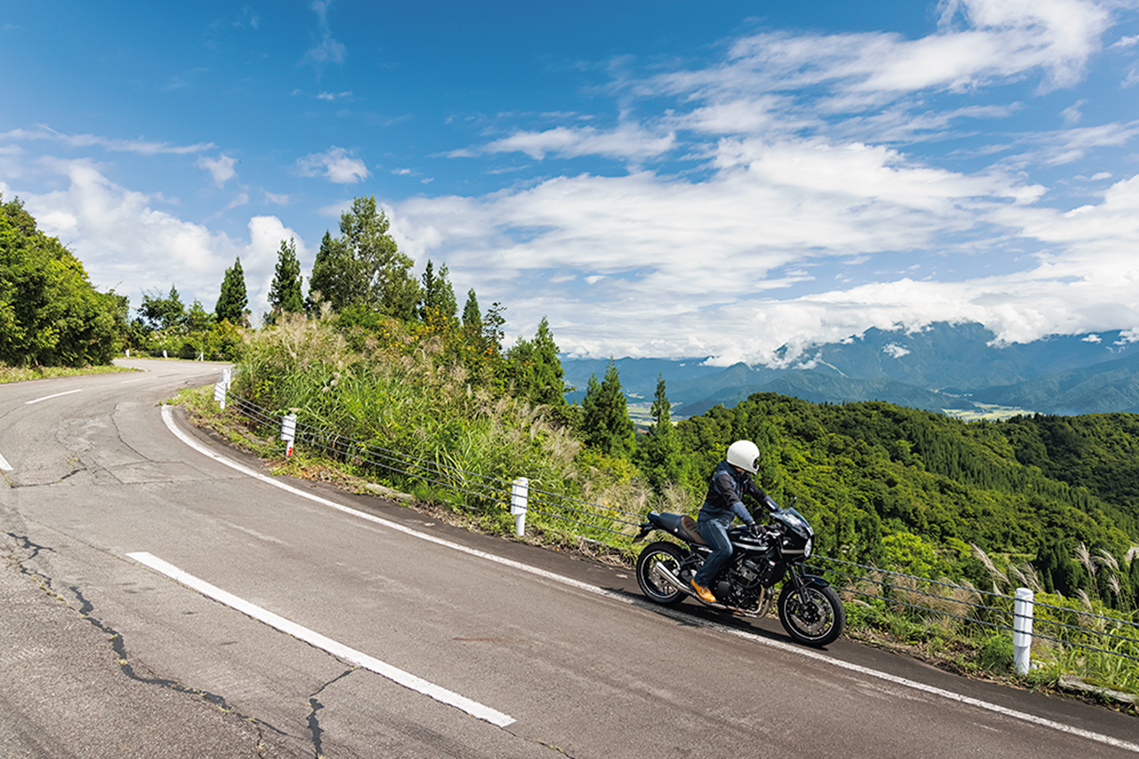 新潟県南魚沼市から十日町へ続く魚沼スカイラインは、尾根沿いを走る全長約20㎞の快走ルート。秋は10月下旬〜11月上旬が紅葉の見頃で、カエデやブナに彩られた山並みと棚田が広がる魚沼盆地を眼下に望む絶景が魅力だ。タイトなコーナーとワイドなストレートが織り交ざる走り応えある道は、紅葉狩りとライディングの両方を堪能できる。展望台も点在し、越後三山を望む景観は必見