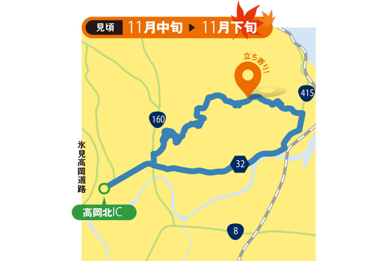 富山県高岡市と氷見市を結ぶ二上山万葉ラインは、秋になるとヌルデやモミジが鮮やかに色づき、紅葉のトンネルを駆け抜けられる快走ルート。展望台からは富山湾や立山連峰を一望でき、紅葉と日本海、雪を頂いた山並みが織りなす絶景は格別。タイトなコーナーも多く、走りと眺望の両方を楽しめる